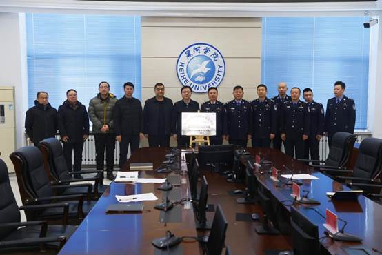 12月5日,黑龙江省高校校园反诈中心省级示范基地揭牌仪式在明德楼2楼会议室举行。学校党委委员、副院长高孝成,黑河市公安局党委委员、副区长、黑河市公安局爱辉分局党委书记、局长崔永均,黑河市公安局爱辉分局党委副书记、政委贾延辉,经济合作区边境管理大队教导员孙魁出席仪式,校地双方相关部门负责人参加仪式。